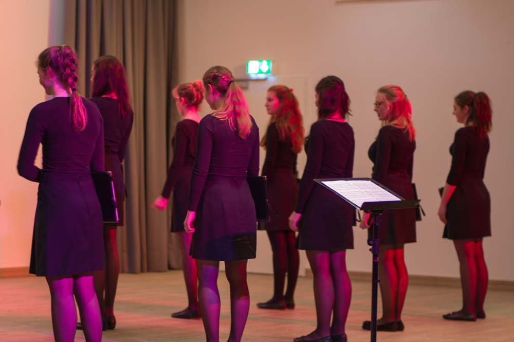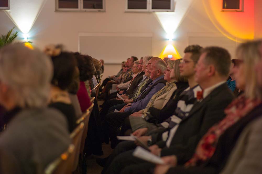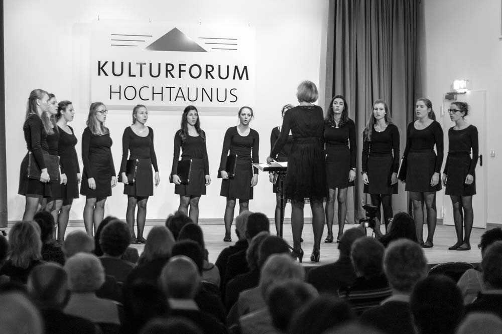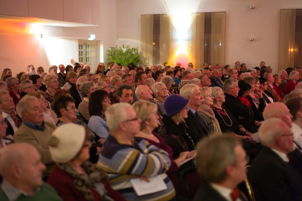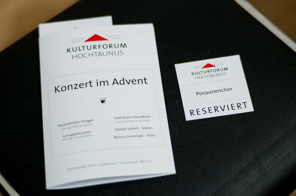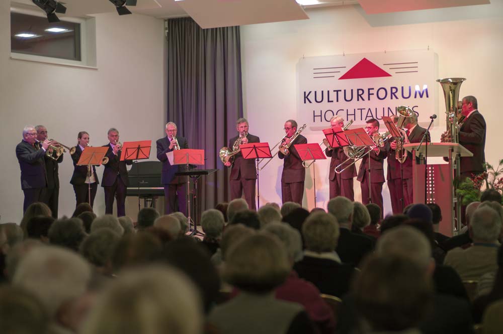 Der Liederkranz eröffnete als Gastgeber mit einem beeindruckenden „My Lord, what a Mornin’“ von R. Lee Gilliam, in dem die Herren gleich einmal zeigten, dass sie nicht nur laut können, sondern durchaus auch pianissimo. Bravissimo gab’s dann von den Zuhörern für diesen stimmungsvollen Einstieg.Von jetzt an griff die erste Programmänderung, denn der MGV sang sein komplettes Konzert-Repertoire am Stück durch. Acht Lieder, der Zeit entsprechend, präsentierten die Sänger unter Leitung von Dirigent Matthias Schmidt. Abwechslungsreich war es dennoch, denn beim „Gnädig und Barmherzig“ von A. E. Grell legte Tenor Martin Maibach ein Solo ein, das seine Mitsänger leise begleiteten. Und bei „Sancta Maria“ sowie zwei weiteren Adventsliedern übernahm Valeska Judisch die Soloparts. Ein wahrer Hörgenuss für das Publikum, was sich am Applaus bemerkbar machte.Ohne Pauken, aber mit Trompeten, Posaunen, Horn und Tuba blies der Posaunenchor Usingen danach den Zuhörern den Marsch. Und zwar einen von Henry Purcell. Im Anschluss schmetterten die Blechbläser eine flotte Gavotte vom Klassik-Genie Bach in den Raum, und weiter ging es mit flotten, getragenen, bekannten Weisen und Literatur aus dem Spätmittelalter. Ebenso abwechslungsreich war das Programm, das die jungen Damen des La Cappella-Chores aus Burgholzhausen auf die Beine gestellt hatten. Die zwölf Sängerinnen im Alter von 16 bis 19 Jahren präsentierten meist vierstimmig, zum Teil sogar siebenstimmig, Werke aus der klassischen Frauenliteratur.Zum Teil. Denn die jungen Damen hatten auch moderne Stücke aus Schweden und Großbritannien dabei. „Natt over jorden“ von der Komponistin Karin Rehnquist war sicher eines der beeindruckendsten Stücke, in dem die Sängerinnen langsam verhallende Echos gesanglich darstellten. Ein weiterer Höhepunkt war „Stille Nacht“. Wer dachte, das war das letzte Highlight des Abends, hatte sich getäuscht. Denn mit der Zugabe setzten die Sängerinnen noch eins drauf. Das „Ding-Dong-Lied“ mussten die jungen Damen daher noch einmal wiederholen. Erst danach durften sie die Bühne verlassen.