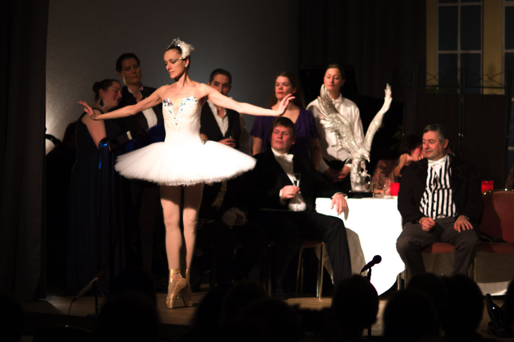 An Auftritten während des ausschweifenden Festes gab es unter anderem den sterbenden Schwan von Ballerina Katrin Alexandrova zu sehen, La donna è mobile von Tenor Andreas Kattiker zu hören und im weiteren die Barcarolle, die von Valeria Dora und Kerstin Klein interpretiert wurde. In „Olympia“ zeigte Lucy Snyder wieder einmal ihr komisches Talent als Aufziehpuppe, in der Polka brillierte Ferdinand Pastorek an der Geige.