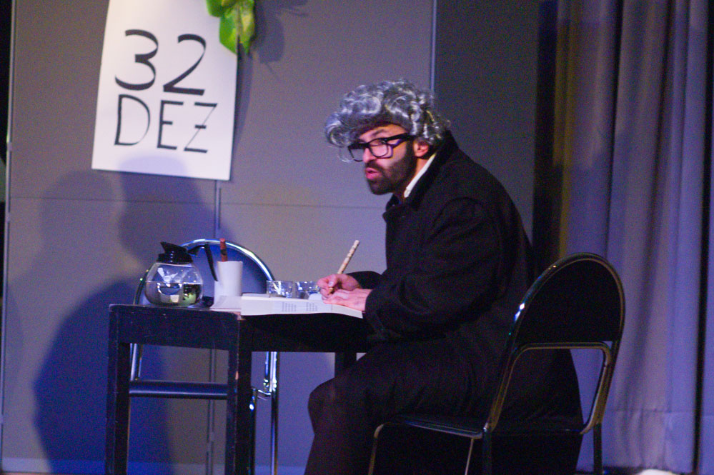 Im dritten Akt trat „Frosch“, der Gerichtsdiener auf, der ebenfalls dem Flachmann sehr zugeneigt war. Eine Glanzleistung, die Jevgeni Sarmont als betrunkener Gehilfe des Gefängnisdirektors hinlegte.