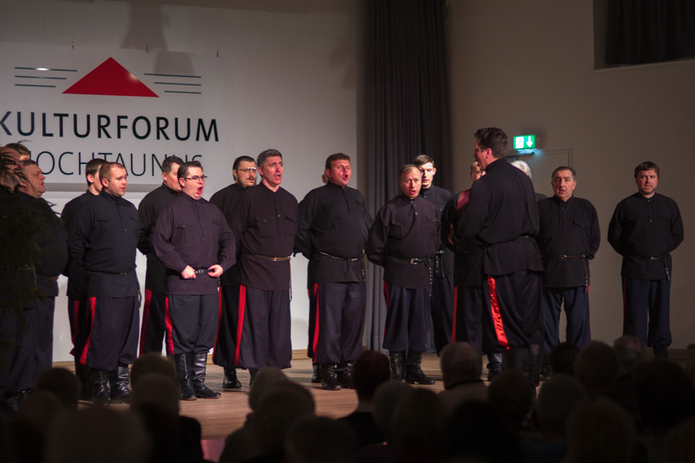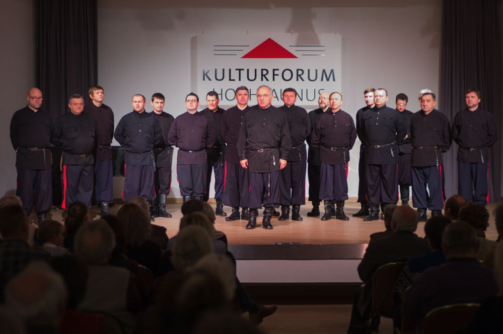 So wehte am Sonntagabend mit den Don Kosaken ein Hauch von Russland durch den Konzertsaal des Kulturforums. In einem rund zweistündigen Programm gaben sie sowohl Kirchengesänge als auch russische Volksweisen und Weihnachtslieder zum Besten.