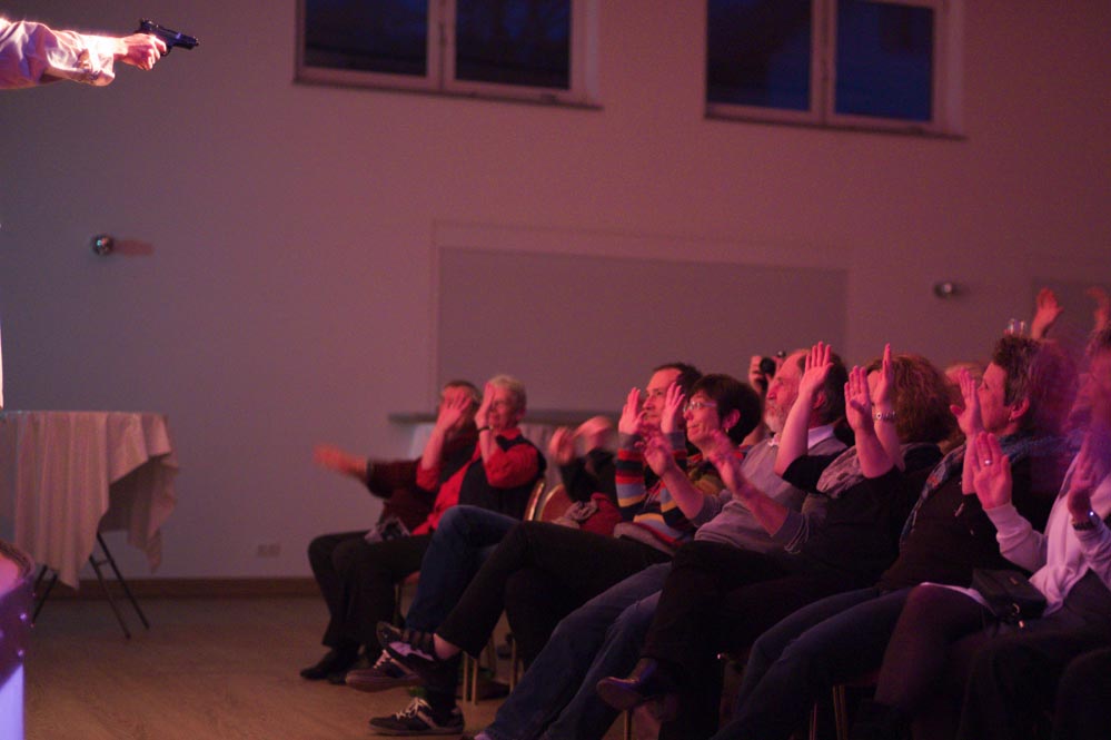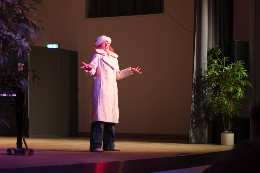 Auch der Bericht über ihre selbst geschriebene Oper ist ein Highlight. Judisch, von Beruf Logopädin, erstaunt das Publikum nicht nur mit der Schnelligkeit, mit der ihr die Wörter aus dem Mund sprudeln. Auch die „Oper“ ist schnell vorbei. Drei Akte in drei Minuten, danach sind alle tot, einschließlich dem Dirigenten.