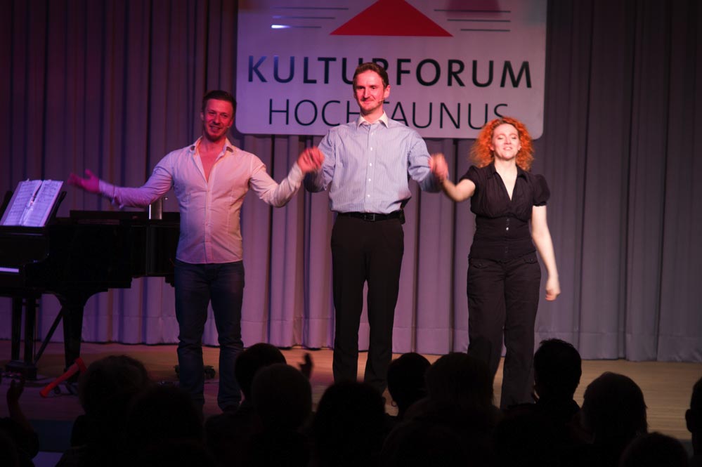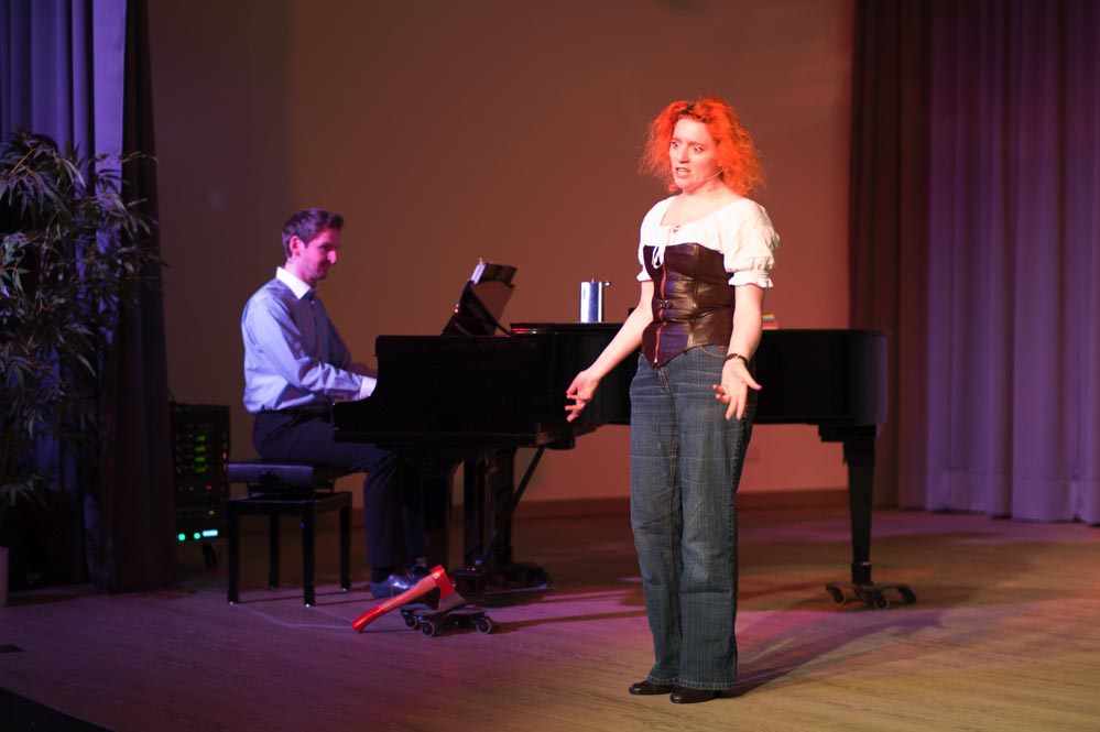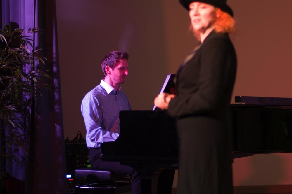 Immer auf dem Flügel punktgenau begleitet von Marcus Gemeinder. Ob als unmusikalische Musikkritikerin, Vampirin, die aus Liebeskummer Selbstmord an der Sonne begeht, singende Leiche, die den ersten Wurm begrüßt, oder als Hass-Liebende, Valeska Judisch und Kai Gemeinder begeisterten die rund 120 Zuschauer mit ihrem schauspielerischen Talent und gesanglichen Können, gepaart mit der Lust am Makabren und Boshaften.