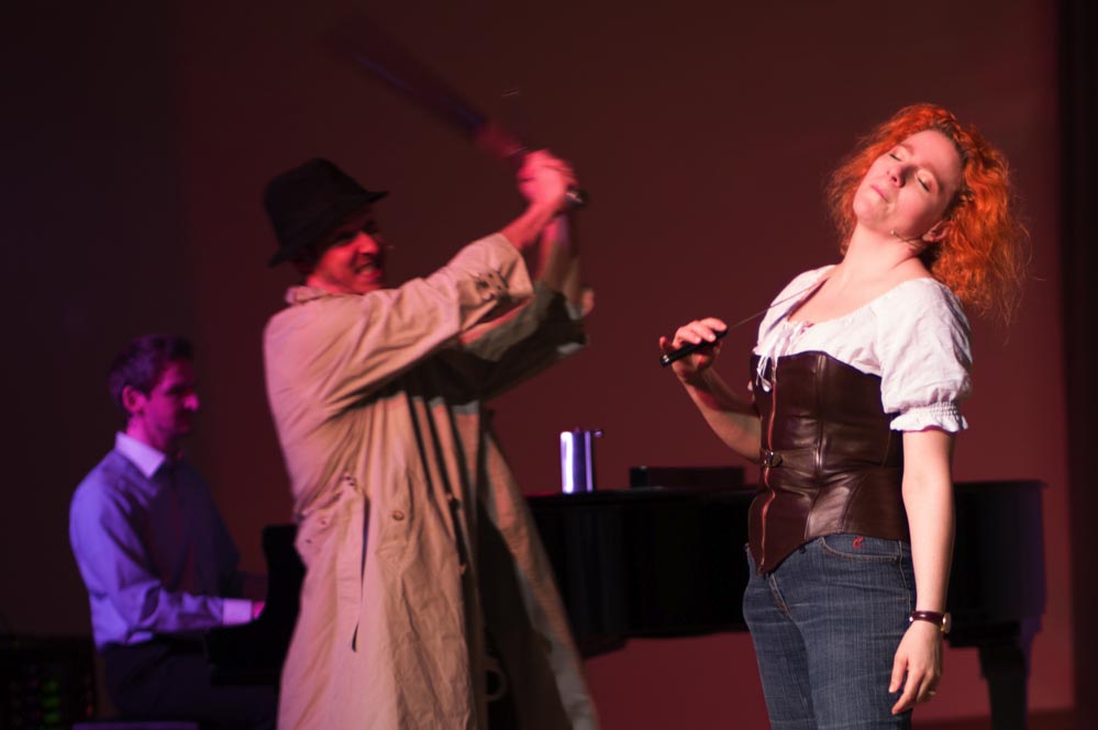 Valeska Judisch steht ihrem Bühnenpartner in nichts nach. Musikalisch begleitet, klärt sie das Publikum darüber auf, wie das Boeuf Stroganoff entstanden ist. Klar, dass das nichts mit harmlosem Kochen und Braten zu tun hat – schließlich geht es im ganzen Programm um Mord und Totschlag.