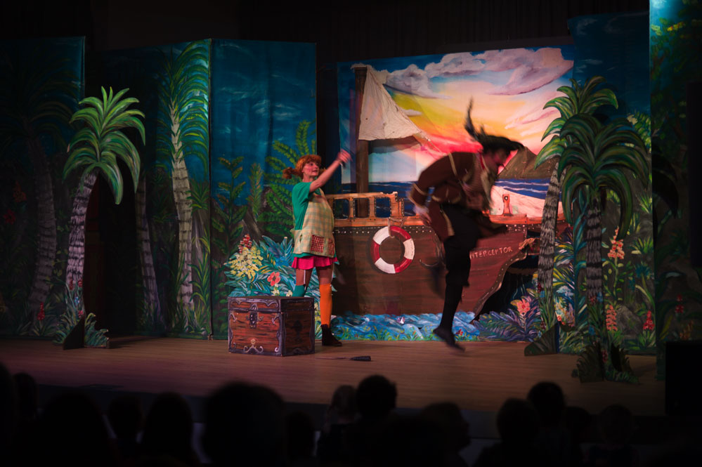 HASSELBACH - (sn). Gebannt verfolgten die Kinder, wie Pippi Langstrumpf mit den Seeräubern umsprang, sie verprügelte, mit Säbeln gegen sie kämpfte und austrickste. Manche der Steppkes stellten sich sogar an den Bühnenrand, um näher am Geschehen zu sein. Dank der vielen kleinen Stühle, die sich der gastgebende Männergesangverein Liederkranz beim Kindergarten Hasselbach ausgeliehen hatte, war für ausreichend Sitzplätze auch für die kleinen Zuschauer gesorgt. Denn am Sonntag war Sperlichs Märchentheater mit der Aufführung von „Pippi Langstrumpf“ zu Gast im Hasselbacher Kulturforum.