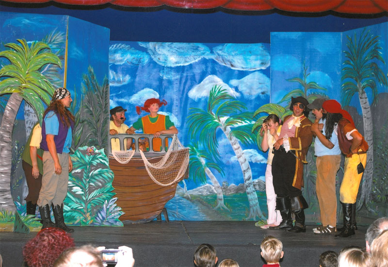 Aber das gelingt nur, indem die Kinder im Zuschauerraum mithelfen und kräftig pusten. So verstehen Sperlichs immer wieder die jungen Zuschauer mit in das Stück einzubinden. Einige „Spezialeffekte“ wie die beim Öffnen staubende Kiste, die Explosion mit viel Qualm zur Befreiung von Pippis Vater oder der Felsen, den Pippi im Handumdrehen hochhebt, machen das Stück noch lebendiger. Die Familie Sperlich kann ja auch auf jahrzehntelange Bühnenerfahrung zurückgreifen. „Schon unsere Vorfahren waren Zirkusleute, Artisten und Schauspieler“, erzählt Barbara Sperlich, Mutter von vier ebenfalls mitreisenden, zum Teil schon erwachsenen, schauspielernden Kindern.