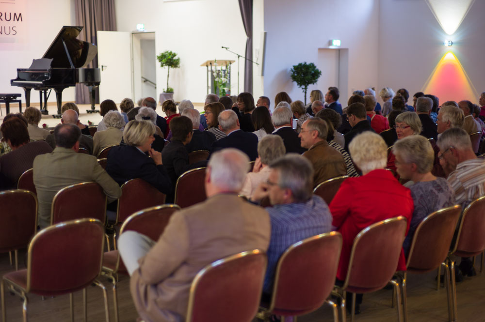 Freuen durfte man sich bei diesem zweiten „Auswärtsspiel“ (nach Grävenwiesbach, der UA berichtete) nicht nur auf diese Perlen der Kammermusik, sondern auch auf den in sechsjähriger Eigenarbeit vom Liederkranz Hasselbach neu erbauten Konzertsaal. Die rund 140 Zuhörer konnten Gummistiefel und Helm getrost zu Hause lassen – gerade noch rechtzeitig fertig geworden war dieses Schmuckstück. Es bestand seine Feuertaufe mit Bravour. Violine und Piano waren im gesamten Raum, auch ganz hinten, gleichmäßig gut zu hören und die Nachhallzeit war in einem sehr angenehmen Bereich.